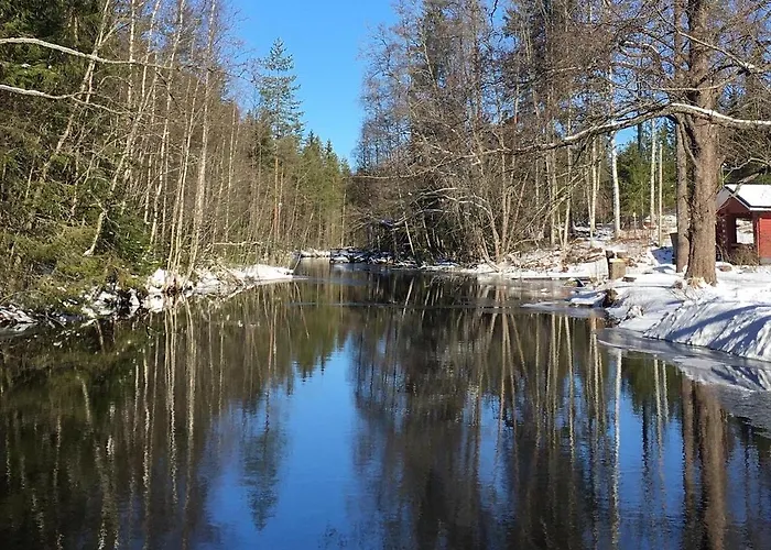 Boasting a location 2.4 km from Aulanko, the 2-bedroom Evon Luonto - Aulangon Rantahuvila Hameenlinna villa provides a terrace with lake views. Offering a swimming pool, this beachfront villa invites guests to visit Birthplace of Jean Sibelius Museum, located about a 10-minute drive away.